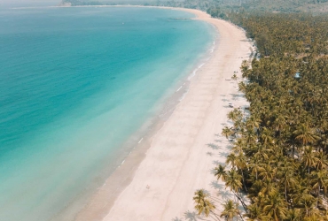 - Relaxing on tropical paradise Ngapali beach with pristine sand, clear blue waters and groves of picturesque coconut palms