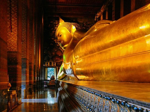 Nearby Grand Palace is Wat Pho - the oldest and biggest pagoda in Bangkok with more than 1000 Buddha statues and the huge one sit-back Buddha in gold.