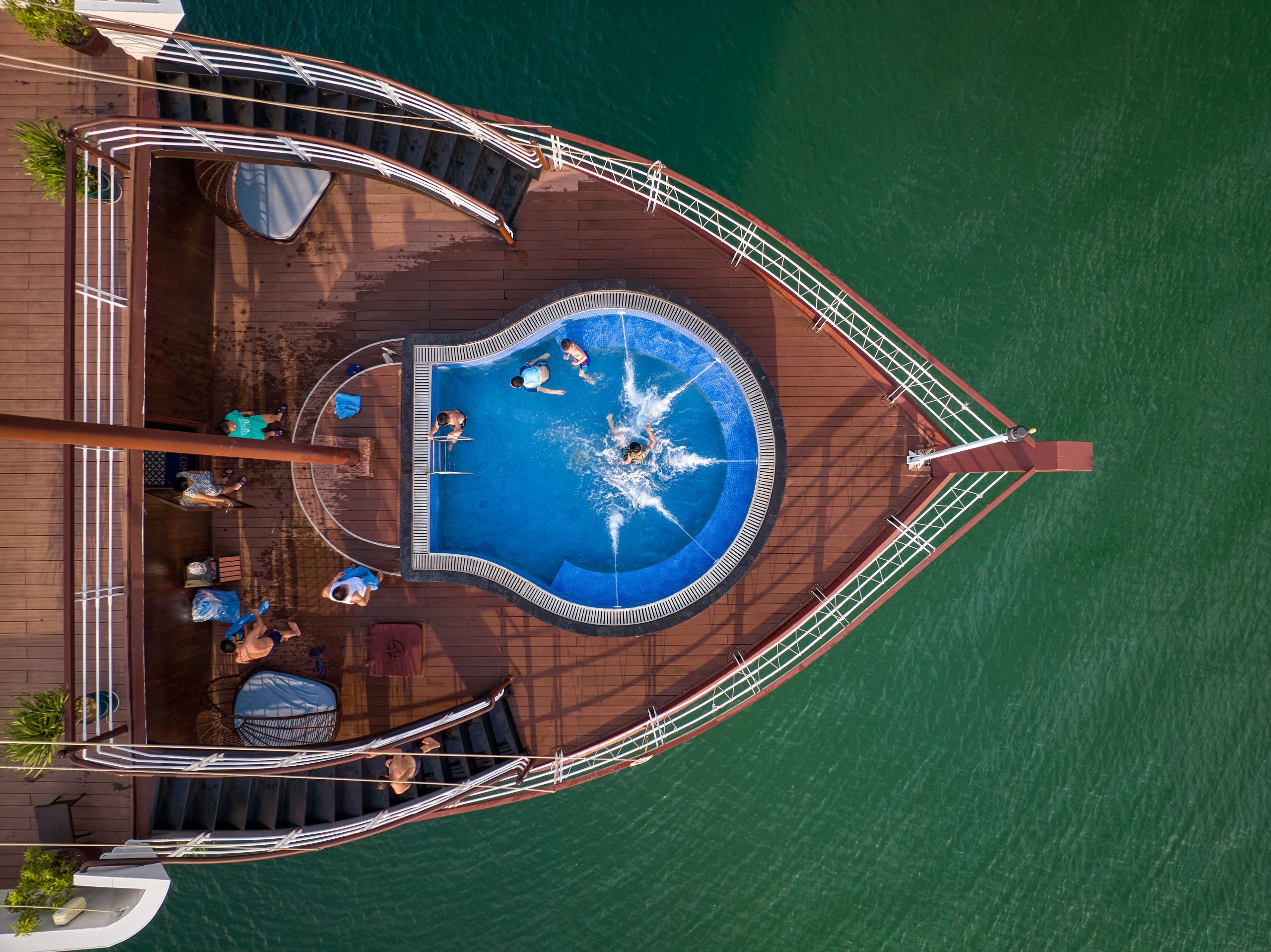 Back on Le Journey Elegance, where guests can enjoy a dip in the swimming pool on the third deck and admire the stunning sunset over Lan Ha Bay or experience therapeutic massage services right on board.