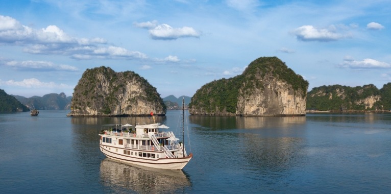 | 09.15 | Set sail for the Trong Cave. Join the kayaking excursion to the Trong cave and surrounding waters. Kayaking duration is about 45 minutes. There will also be time for relaxing on board and swimming while here. |