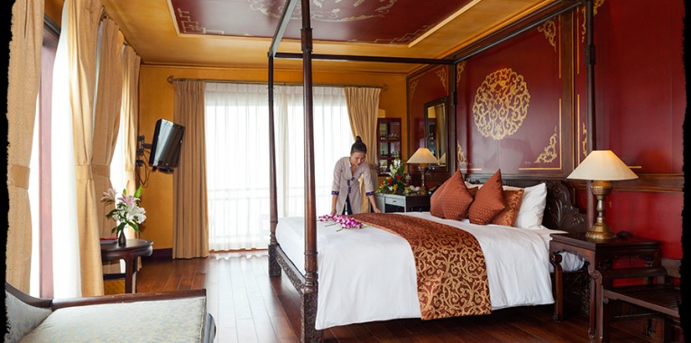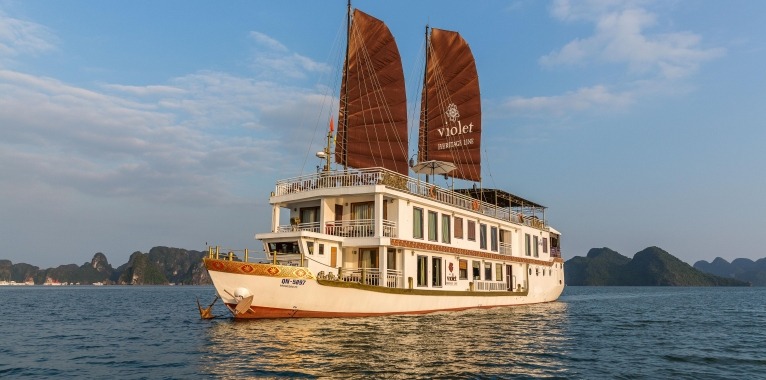 Heritage Line’s family of boutique cruise ships includes “Three Sisters” in Halong Bay, the youngest of whom is the coquettish VioletViolet is named after the beautiful Violet Chirita, a delicate purple-flowered plant that grows nowhere else but on the rocky slopes of Halong Bay. Like her namesake, Violet is small and exquisite.