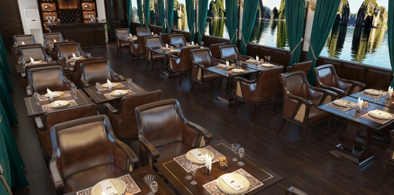 | 19h00 | Your highlighted dinner à la carte onboard La Regina Cruise is well-served at La Corona Restaurant on the second deck. At La Regina, every meal is a delightful event. La Corona restaurant serves fusion cuisine with traditional Vietnamese taste and innovative modern dishes, prepared with fresh ingredients that have a strong provenance. |