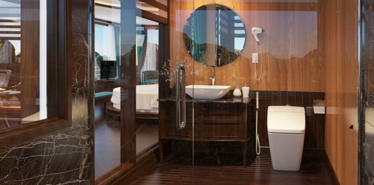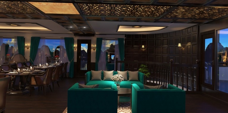 You travel from a tender toembark our cruise ship. LA REGINA CRUISE welcomes you onboard, since this moment, you officially spend your time on your own oasis of luxury and let your Halong Bay cruise begin. The striking and coquettish lobby welcomes you with delicious tropical taste of welcome drinks and the warmest greetings of the crew. Rest at lobby lounge and check-in your charming suite. |