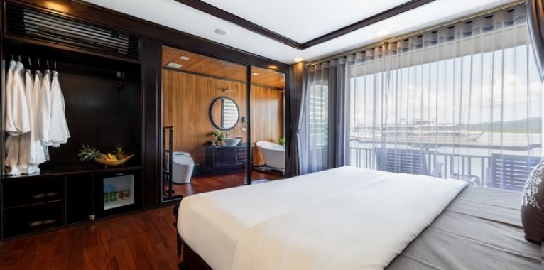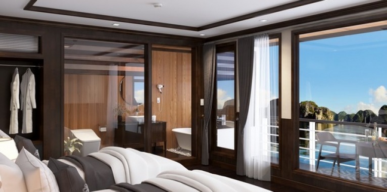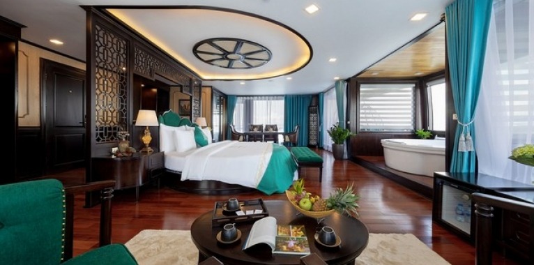 A trip with La Regina Legend Cruise is beyond the cruising experience; it is the individual meeting with a Vietnamese woman who claims to be the Queen of Bays. It takes you to the amazing seascapes of Halong Bay, Lan Ha Bay and Cat Ba Island. With her, you discover the deep feminine heart and soul of the East, as soft as silk, as tender as the breeze, nevertheless as powerful as the ocean. Inspired by the history of Vietnamese queens, The Legend Cruise Legend embodies power, femininity and seduction. Let yourself be part of its exclusive journey with the ultimate personalized onboard service and the most sophisticated accommodations and facilities in Halong Bay and the surrounding areas. Accommodations