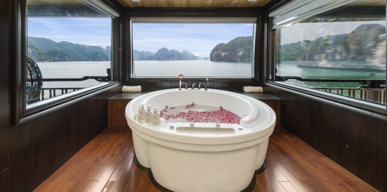 | 21h00 | Enjoy the magical landscape of the bay by night up on the top deck. Relax whilst enjoying drinks from Le Soleil Bar. Other choices for you to enjoy the evening: Try luck with squid fishing, watching a movie in the restaurant. Overnight on board.Option: Massage service available. Please book with Cruise Manager directly (please see massage menu) |