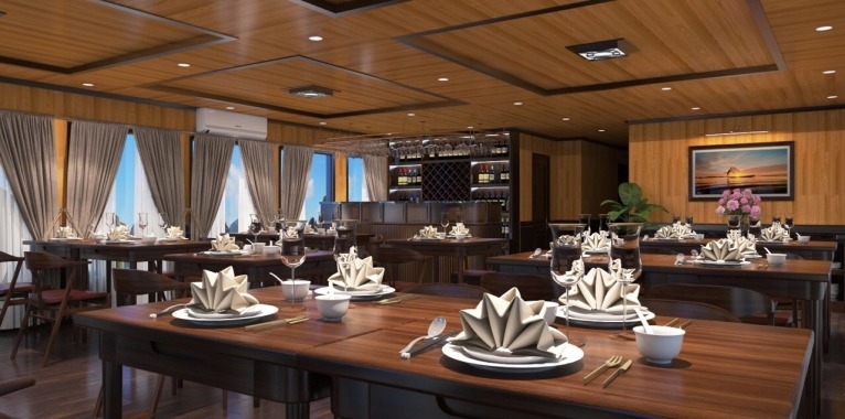 13.15: Enjoy lunch with sampling regional fresh seafood while cruising on exquisite water, passing Incense Burner island, Fighting Cock islet, Stone Dog… Lavender Cruise will bring you to explore Ha Long Bay on the most wonderful route where just a few cruises go through.