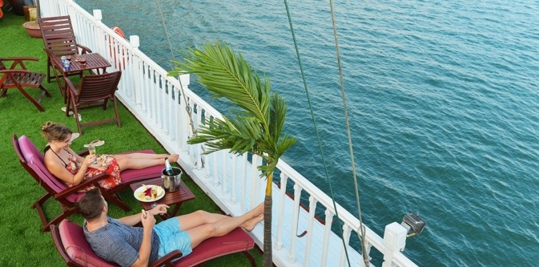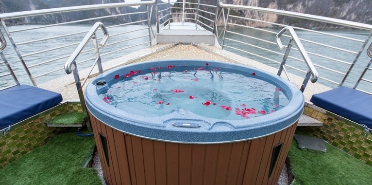 Relax on the sundeck with a few cocktails complimented by a variety of tropical fruits and best local wines. Then attend a cooking demonstration with our Chef to learn one of the most popular cuisines in Vietnam: spring rolls, or refresh yourself in outdoor Jacuzzi.