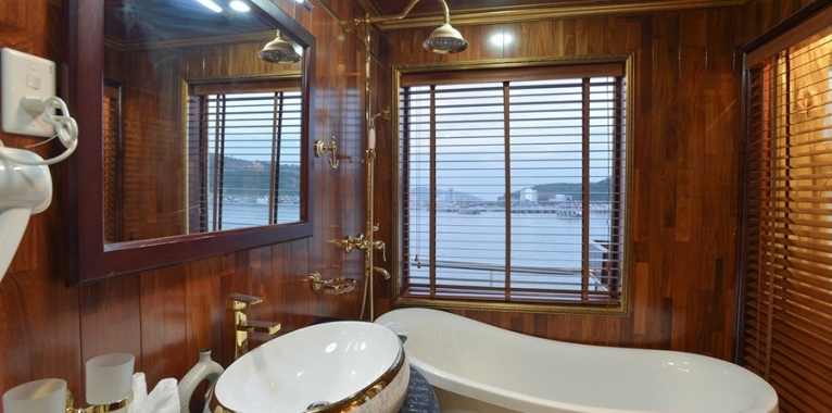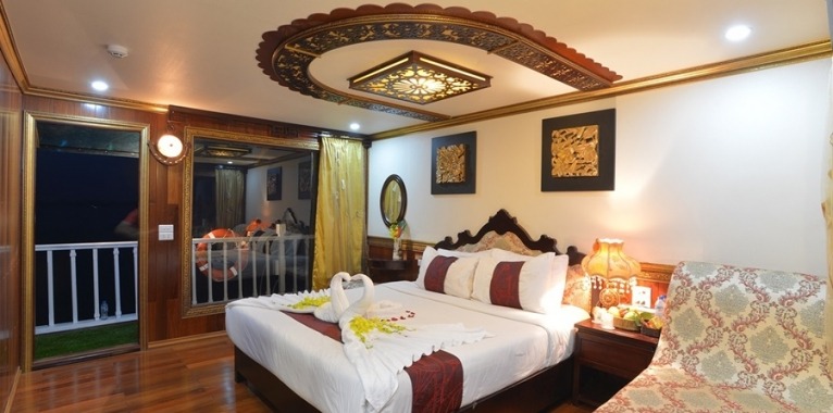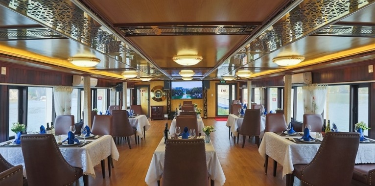 We proudly present one of the biggest wooden boats, the Oasis Bay Classic Cruise, launched in Nov 2015. The boat is fully equipped with the most advanced and upgraded technology. Entering the boat, tourists will be overwhelmed by its extreme impressive art design. The main material of this boat is precious and rare timber. That brings customers unique experiences different from other common iron boats. You are closer to nature and easier to explore its beauty. For interior design, characteristics of the Eastern culture will be featured by wooden floor, wall, handcrafted ceramic artworks, rattan, bamboo furniture and the highlighted color, dark brown.