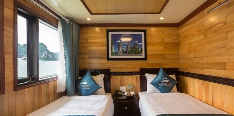 Launched at the end of November 2015, Oasis Bay Classic Cruise appears right away following its name. The interesting inspiration comes from the small Oasis “floating” in the Ha Long bay. In addition, you will be strongly impressed in this wooden boat by its sophisticated oriental style, contemporary luxurious cabins and facilities and professional services. Our purpose is not simply to bring our guest a journey on Ha Long Bay, but to create a unique, unforgettable travel experience to all of them.