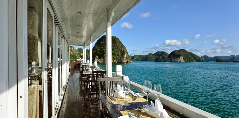 A traditional wooden junk designed for a personalised experience, the Paradise Luxury is the perfect blend of chic, modern styling and traditional Vietnamese detailing. The warm, wooden interior exudes classic charm without skimping on comfort. The sophisticated dining room, perfect for intimate dining, offers tailored menu options, an unlimited a la carte menu, and free flow of selected drinks. The spacious sundeck with sun beds and comfortable lounge areas guarantees spectacular views of the karst limestone formations and emerald waters of Halong Bay. And with a world class day spa on board, this ship redefines luxury cruising in Halong Bay.