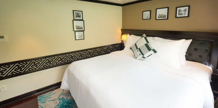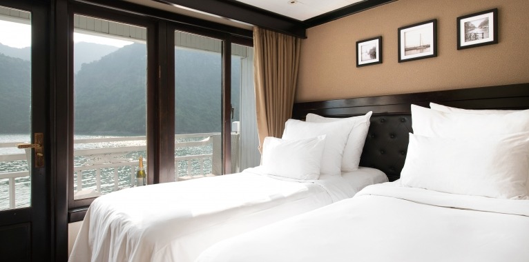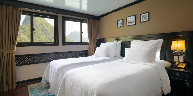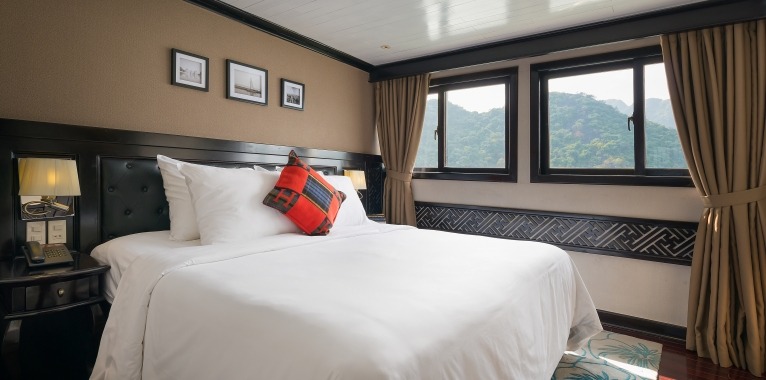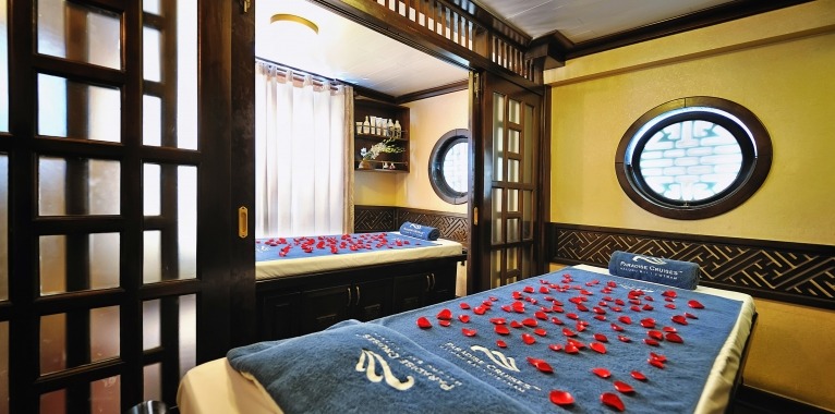 A traditional wooden junk designed for a personalised experience, the Paradise Luxury is the perfect blend of chic, modern styling and traditional Vietnamese detailing. The warm, wooden interior exudes classic charm without skimping on comfort. The sophisticated dining room, perfect for intimate dining, offers tailored menu options, an unlimited a la carte menu, and free flow of selected drinks. The spacious sundeck with sun beds and comfortable lounge areas guarantees spectacular views of the karst limestone formations and emerald waters of Halong Bay. And with a world class day spa on board, this ship redefines luxury cruising in Halong Bay.