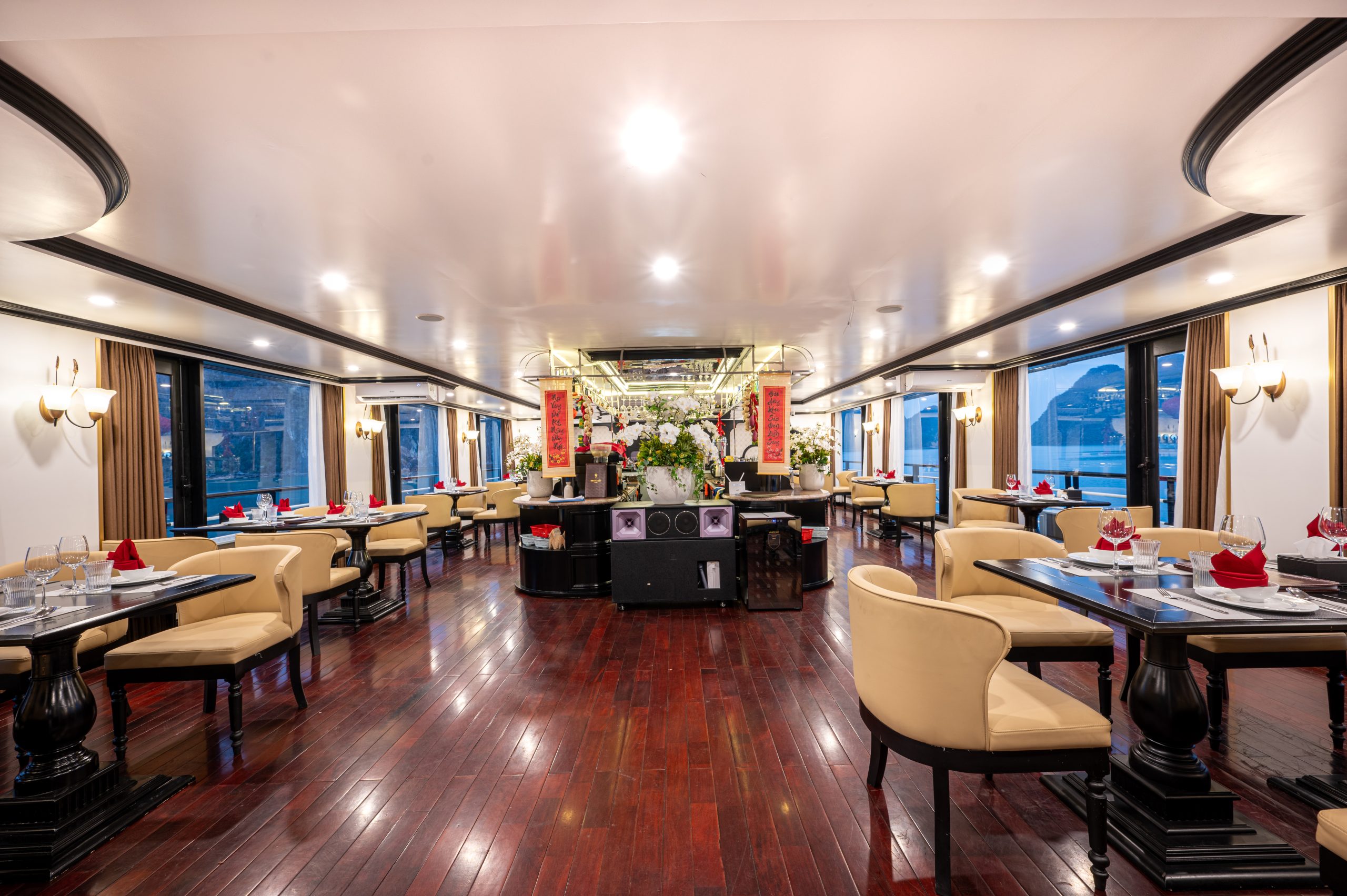 - Wifi is available in the restaurant/bar area only, internet connectivity is limited due to geography of Ha Long Bay