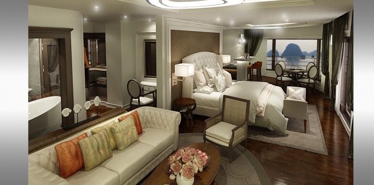 As one of the biggest cruise in Halong Bay, the President will bring you the top-notch experience and relaxation. With the largest sundeck in Halong Bay (87m2) and the capacity of up to 120 people, you can enjoy your journey over the bay with the unique services: luxury spa on cruise, swimming pool on the sundeck, a piano lounge and a restaurant. Moreover, with the classic, chic and stylish design – the President Cruise is yours.