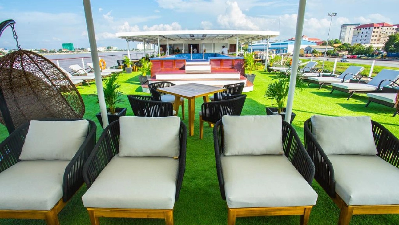 The ninety square meter Lounge is on the Sundeck along with the ship’s Bar. These are the central points for socializing when not on shore excursions. The large Sundeck is fitted with deck chairs where you can relax and enjoy the surrounding landscapes and watch the day to day activities of life along the river unfold.