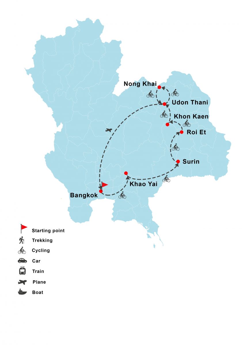 Bangkok - Khao Yai - Surin - Roi Et - Khon Kaen - Udon Thani - Nong Khai