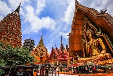East of Bophut on a small island connected by a dirt road, there is the Big Buddha which is a golden statue of Buddha 12 meters high, sitting at the top of a staircase richly decorated with dragons. At the Northeast tip of the island not far from the Big Buddha, it is Chinese Buddhist temple of Wat Plai Laem, especially recognizable by its huge statue of Guanyin (Guanyin, with 18 arms, the goddess of Mercy and Compassion).