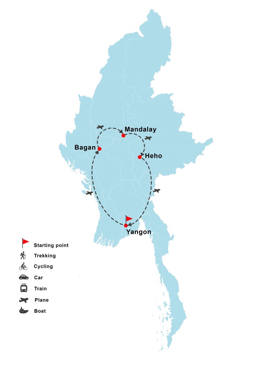 Yangon - Inle Lake - Mandalay - Bagan - Ba Be