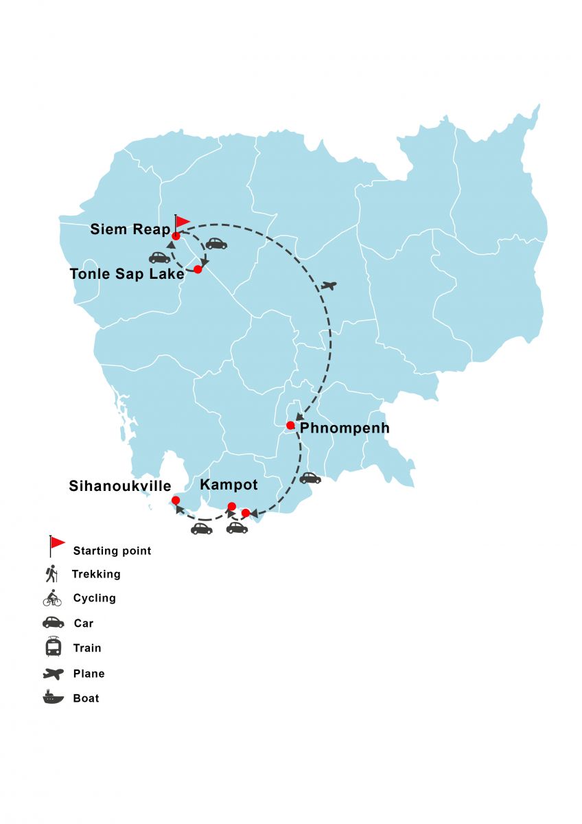 Siem Reap - Angkor Complex - Tonle Sap Lake - Phnom Penh - Kep - Kampot - Sihanoukville