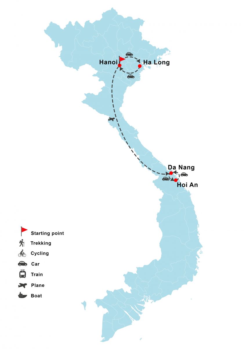 This tour is designed for active honeymooners with a lot of fun and memorable. From Hanoi capital with colonial architecture, peaceful lakes and oriental temples, to the seascape of Ha Long Bay with magical sight, breathtaking rock, to the UNESCO-listed city of Hoian uniquely well-preserved and its streets with old shop houses, ancient temples, chic bars and fashionable restaurants.
