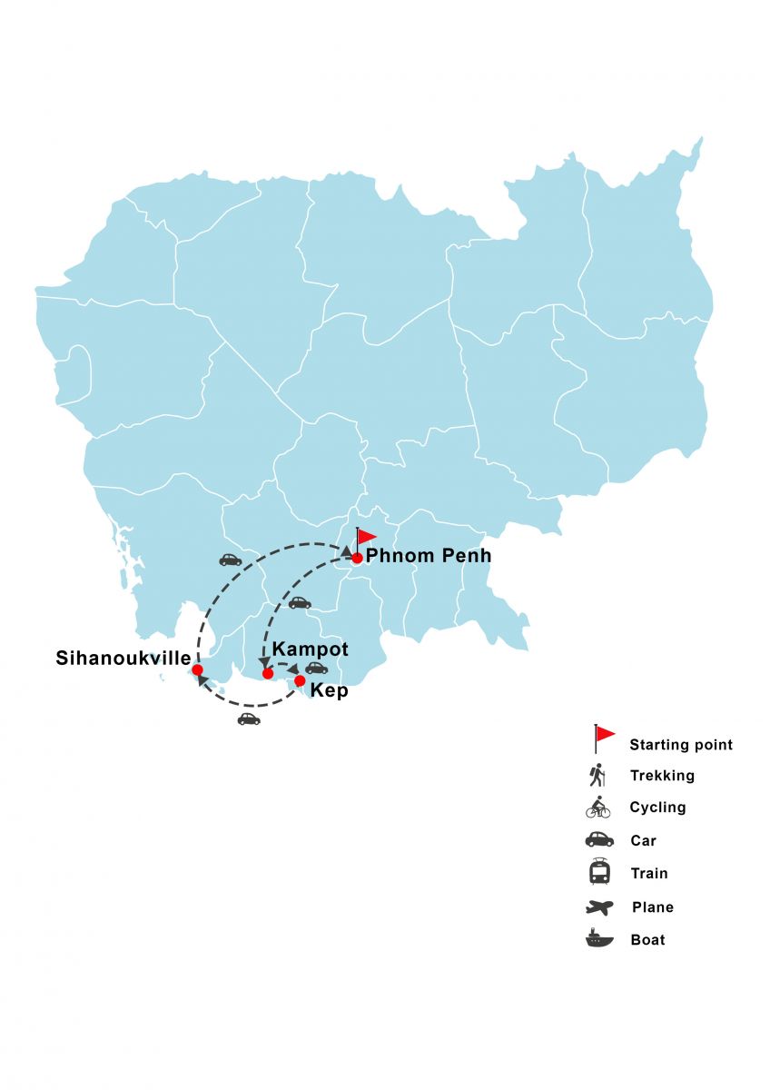 Kep - Kampot - Sihanoukville - Phnom Penh