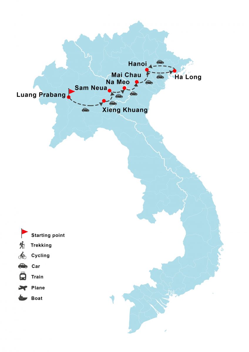 Luang Prabang - Xieng Khuang - Xieng Khuang - Sam Neua - Mai Chau - Ha Noi