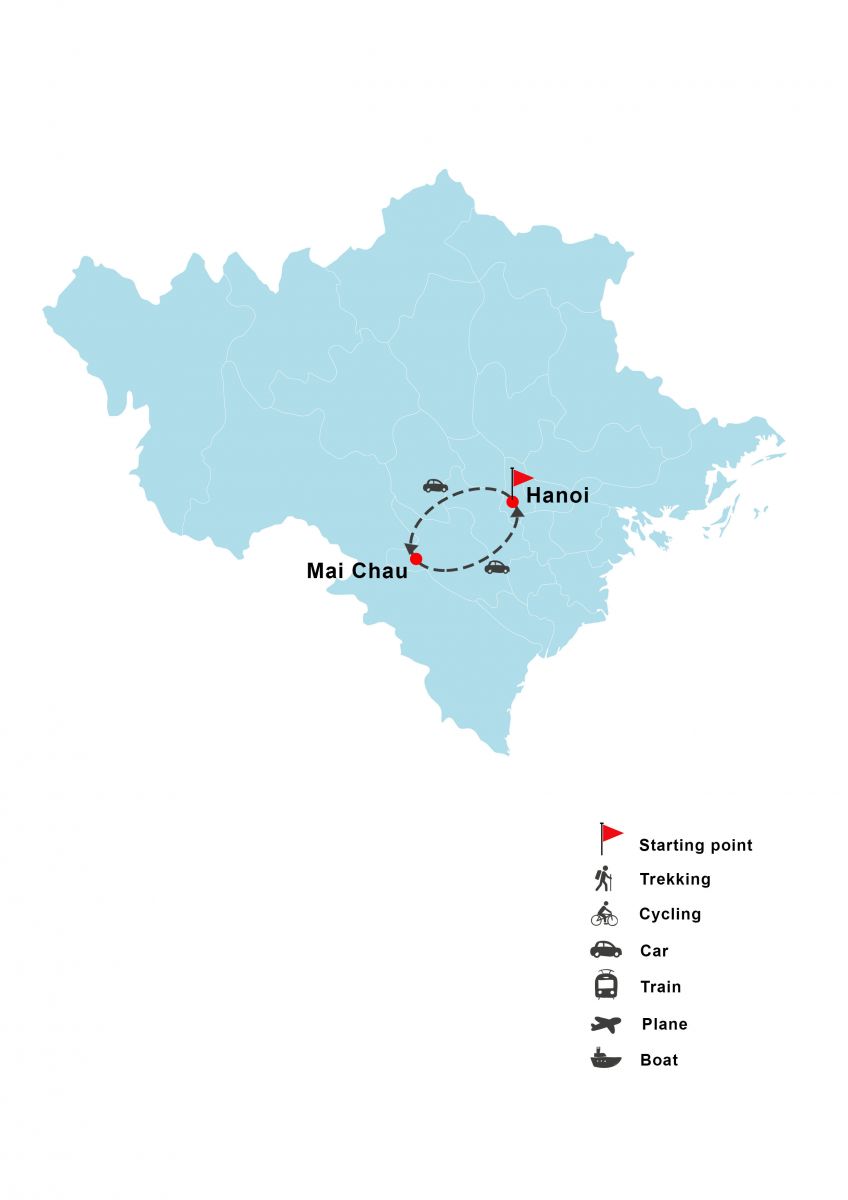 Day 1: Hanoi – Hoa Binh – Mai Chau cycling (L,D)
