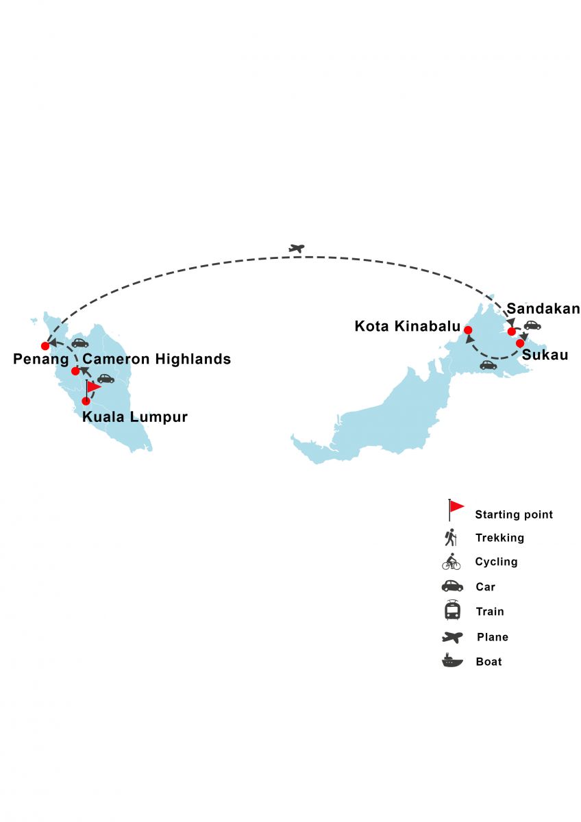 Kuala Lumpur - Cameron Highlands - Penang - Sandakan - Kota Kinabalu