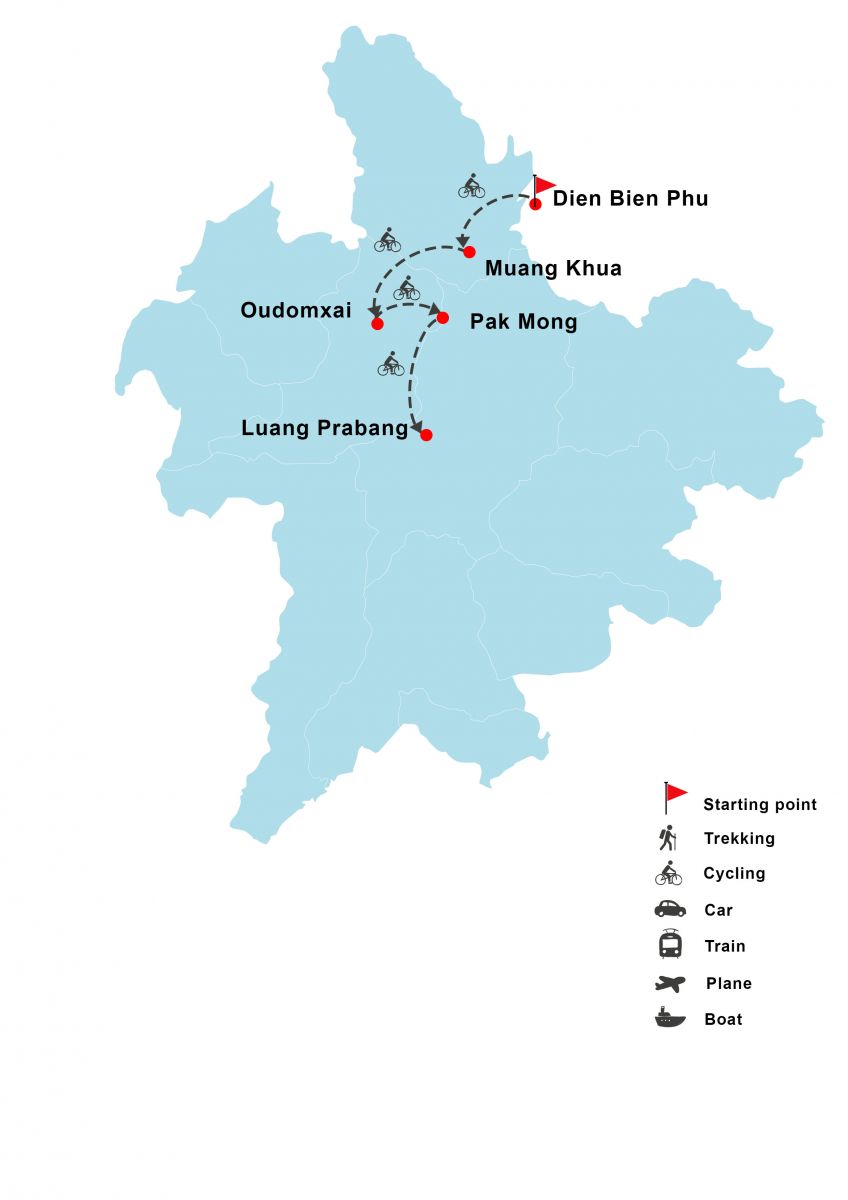 The best ways to experience the diverse scenery and rural cultures of Southeast Asia especially Vietnam and Laos is cycling. We designed the tour “Overland biking from Vietnam to Laos” to help the travelers to have the chance to explore these countries on the eco – friendly way. Starting in the historical site of Dien Bien Phu and ending in the World Heritage town of Luang Prabang, this itinerary allows us to have the amazing experience and the moment to contemplate the variety of bewitching and scenic beauty, understand the diverse culture, architecture, cuisine between the Viet people as well as Laos people.