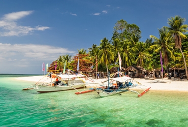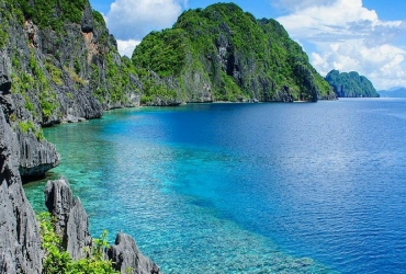 Palawan, approximately one hour away from Manila by air is a more remote, tranquil and sparsely populated island than most of those that offer beach resort vacations. It is long and narrow, 450 kilometres/280 miles in length and 50 kilometres/31 miles in width. Its 2000 kilometres/1200 miles of irregular coastline is dotted with small islands and islets, rocky coves and beautiful white sand beaches. The local flora and fauna is unique to the island.