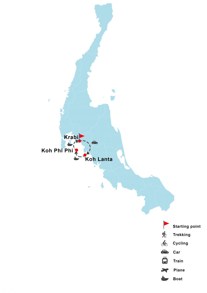 - Relax on the beautiful sandy beaches of the famous sites in South Thailand: Krabi, Koh Lanta and Koh Phi Phi