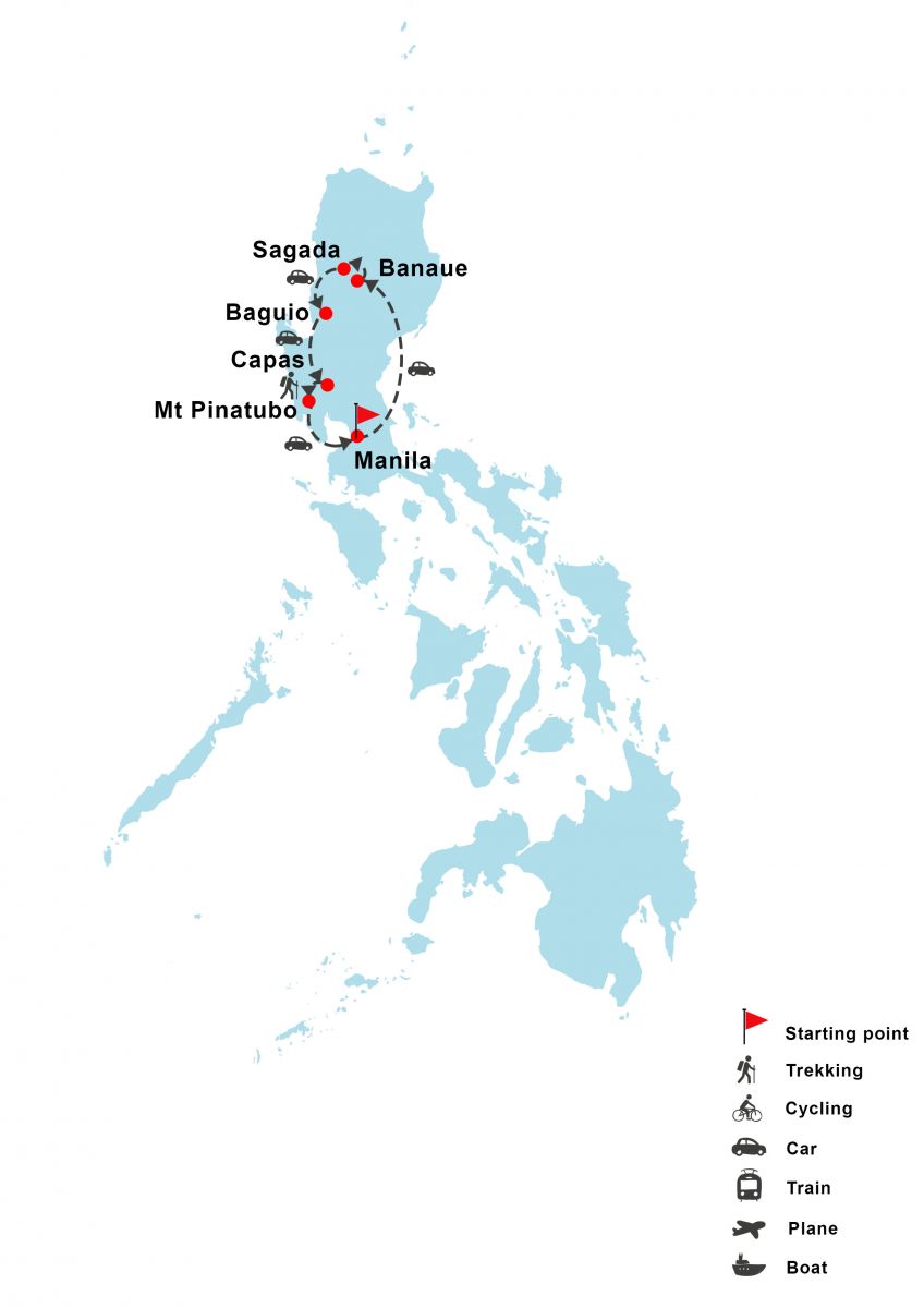 The Philippine Soft Trekking, starts and ends in Manila, which ttakes 11 days taking you from Manila, Philippines and through other destinations in Asia.