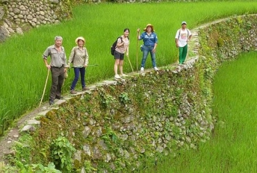 Leave you main luggage in Banaue and pack a daypack with your necessities for the next few days, then drive 40 minutes to the start of the trek. Over the next 3 days and 2 nights, you’ll hike through rice fields, forest and villages, staying overnight in local Ifugao villages where people farm rice the way their ancestors did 2,000 years ago. On this first day of the trek, you’ll walk for approximately 4 hours on a mixture of up and down, but mostly flat terrain. Start from Kinakin and we take a short drive up a paved road to get to our start of the trail. The next 3 hours will be on a rather flat path, and the last hour includes steps down to the guesthouse in Cambulo. There will be plenty of stops along the way, including for lunch, so keep your camera handy for those scenic photos – the rice terraces here are characterised by their pyramid-like appearance, cut almost 360 degrees around the mountains. When you finish today’s hike, you can take a refreshing swim in the river 2 minutes walk from the guesthouse – a welcome relief from a physically demanding day! You’ll spend the night in isolated Cambulo Village – the guesthouse has multi shared rooms, shared bathroom with Asian style toilets. Cold water is expected with scoop showers.