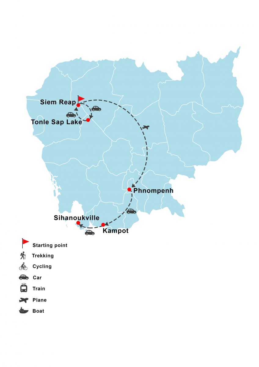 Siem Reap - Angkor Complex - Tonle Sap Lake - Phnom Penh - Kampot - Sihanoukville