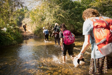 - Trek thru the seasonal vegetable crop, rice fields, natural spring and stream