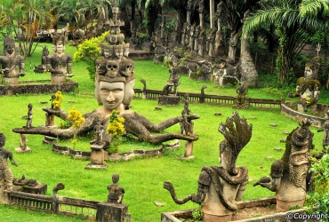 After breakfast, we drive out to see the Buddha Park located 25 km southeast from Vientiane, Laos in a meadow by the Mekong River with a enchanting collection of Buddhist and Hindu sculptures near the Friendship Bridge