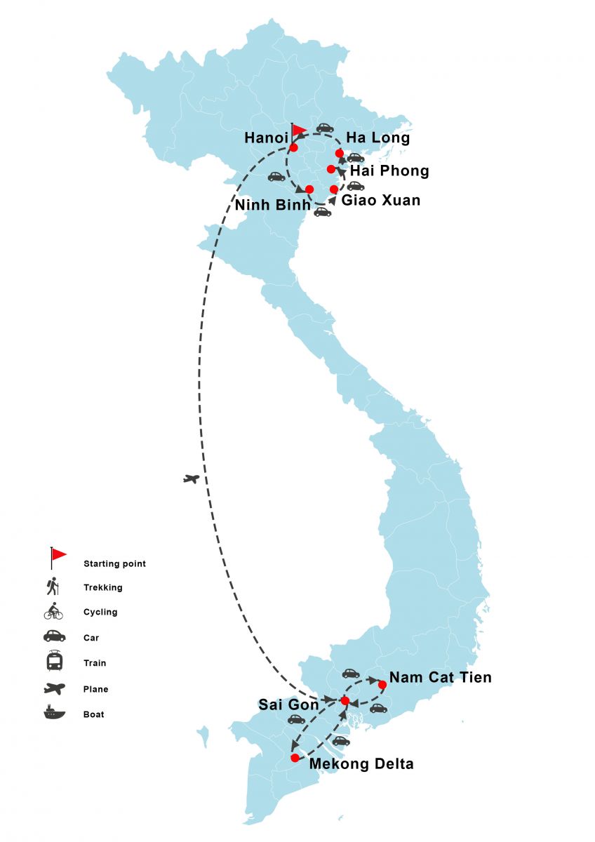 Ha Noi - Cuc Phuong - Ninh Binh - Nam Dinh - Hai Phong - Cat Ba - Ha Long - Saigon - Nam Cat Tien - Nam Cat Tien National Park