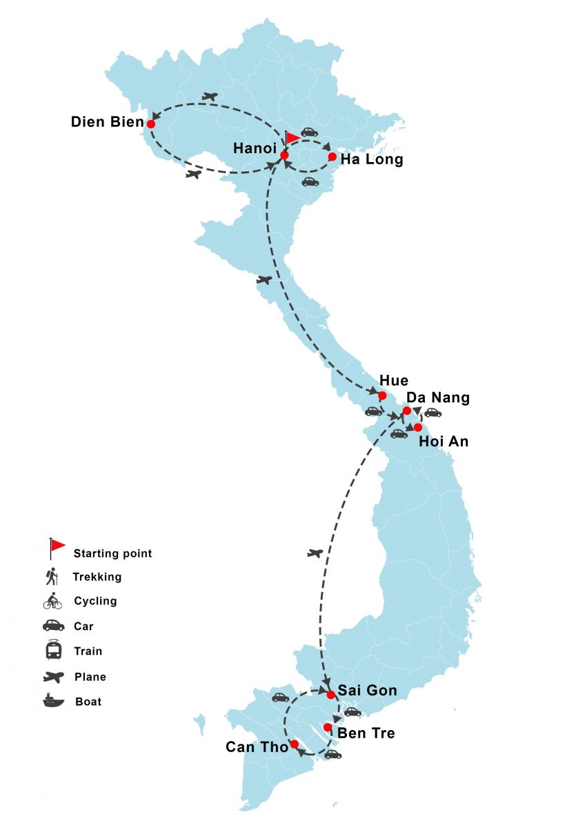 Ha Noi - Dien Bien - Ha Long - Hue - Hoi An - Saigon - Can Tho